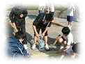 一年生とわらじ遠足と本校の先生(フォレストピア学習担当の先生)を中心にとられていました。